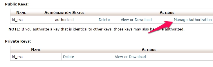 Upload the public key to the hosting server from the cPanel, using the Import Key option