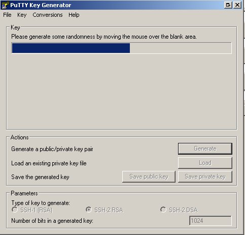 Move mouse randomly over the empty space below the progress bar to create some randomness in the generated key.