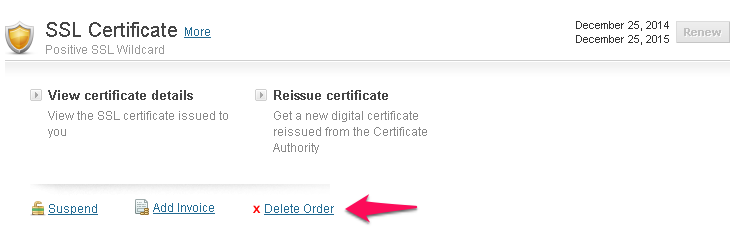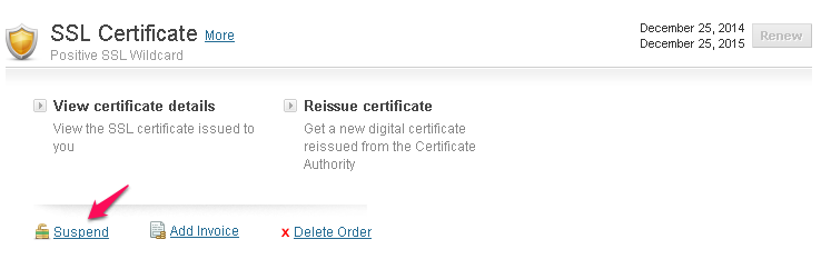 You can Renew, Delete or Suspend your SSL Certificate order by following the steps below.