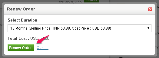 ii. Select the duration of the renewal and click on Renew Order to pay your invoice.