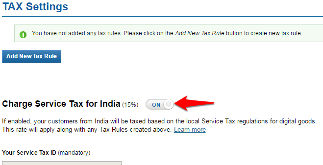 Click on the ON / OFF toggle next to Charge Service Tax Taxes to disable Service Tax.